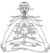 Selon les textes classiques comme le Charaka Samhita et le Sushruta Samhita, le prana circule à travers un réseau de 72 000 nadis, des canaux subtils similaires à des méridiens énergétiques. Ces nadis convergent en sept chakras principaux, des centres vortex d’énergie alignés le long de la colonne vertébrale, influençant à la fois les fonctions physiologiques et les états psychologiques.